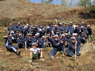 10周年の記念行事に伴い、伐採された学校林に記念植樹を行うことでふるさとの山を愛し、育て、守り、次世代に引き継ぐ意識や感謝の気持ちを醸成する目的で行われました。
