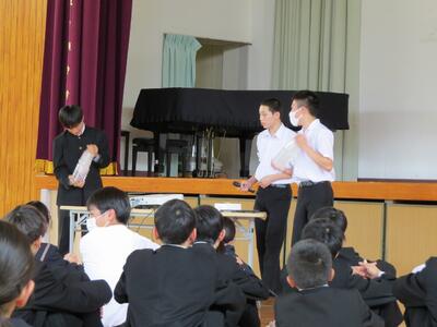 この日のために、生徒会役員を中心に3月からこつこつと準備を進めてきました。1年生にとっては中学校のことについて知る機会となり、2・3年生にとっても改めて確認する機会となりました。