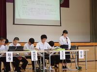 そして後半は、中心議題「五ヶ瀬中学校の良さや伝統を守っていき、さらに発展させていくために自分たちに今できることはなんだろうか?」についての意見交換です。これまでに学級討議を重ね、学級での意見を集約して総会に臨みました。学年を越えて、活発に意見交換をする姿が見られました。