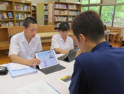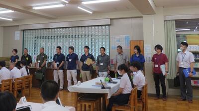 6月26日(木)に、3年生対象にGDP(五ヶ瀬デザインプロジェクト)発表に向けた「メンターレク」が行われました。五ヶ瀬町役場の各課、五ヶ瀬エンターテイメント、五ヶ瀬自然学校、ごかせ観光協会から合わせて11名の皆様に、メンター(指導や助言をして下さる相談相手)として御参加いただき、3年生のGDP発表会に向けてのアドバイスをお願いしました。