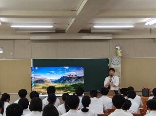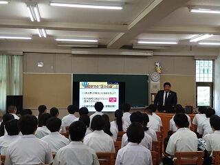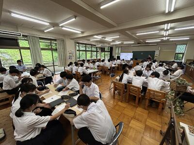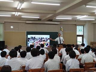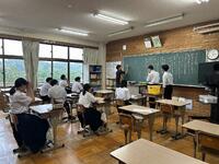 6/27(金)の5・6時間目に私立高校説明会が行われました。本校の2・3年生を対象に、5校の私立高校の先生方に、お話をしていただきました。それぞれの高校で学べること、卒業後の進路等についてお話下さいました。生徒も真剣に話を聞きながら、自分のこれからのことを考えるきっかけになったようです。