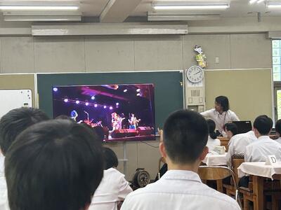 まずはお二人に自己紹介をしていただきました。パワーポイントを使いながら、出身国の紹介や好きなことについて分かりやすく、そして楽しく教えていただきました!ギターが趣味というエヴァン先生は、演奏動画も披露していただき、大盛況でした!