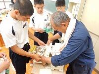 技術の時間の作物育成の授業で2年生が大豆を植えました。