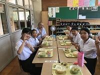 今回は1年生に2名、3年生に3名の方にお越しいただき、楽しい給食時間を過ごせました。