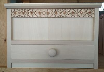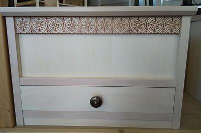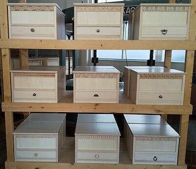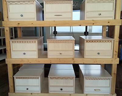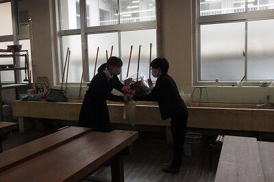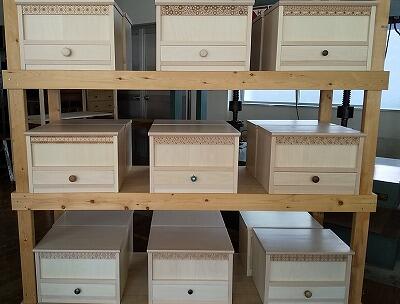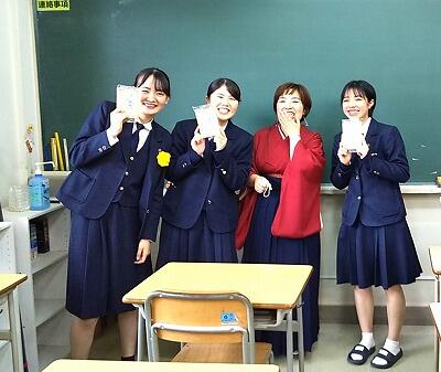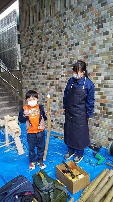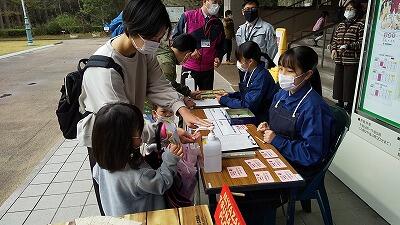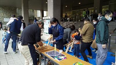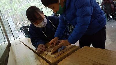 中学生が描いた文字を、インテリア科3年生がレーザー彫刻で加工し、お土産にキーホルダーを制作しました。