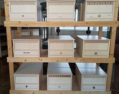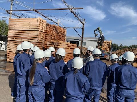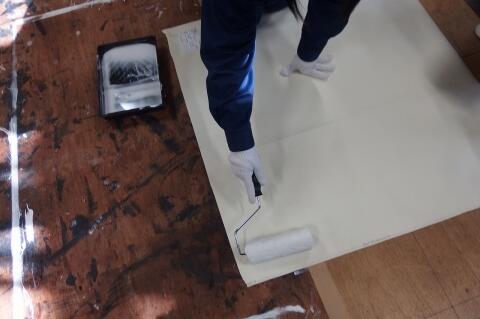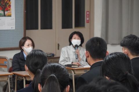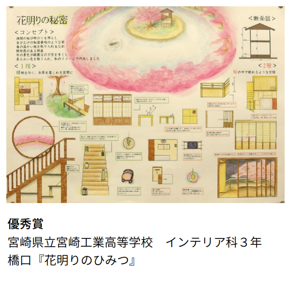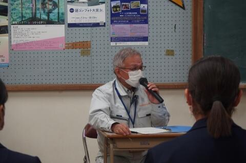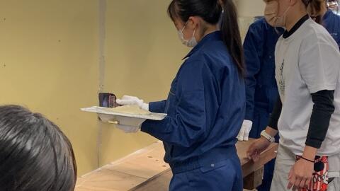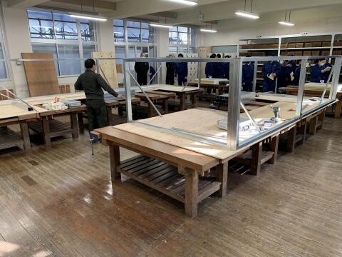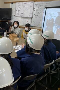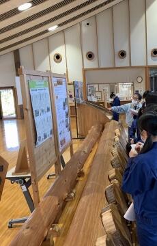 インテリア科では、①課題研究木工班の紹介や作品鑑賞、②音響を体感してインテリアを考える模擬授業、③レタリングの3項目を体験しました。