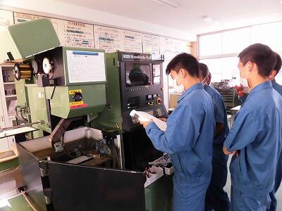 生産システム科の実習風景② 投稿日時 : 2020/05/15 生産システム科 生産システム科で行われる実習を紹介します。<旋盤実習>旋盤実習では、工作機械の旋盤を使い、金属加工について学びます。 <ワイヤーカット実習>ワイヤーカット実習では、PCでかいた図面をもとに、ワイヤーカットという放電加工機で金属加工を行います。 <溶接実習>溶接実習では、アーク溶接・ガス溶接・半自動溶接などの溶接装置を使って、金属の接合について学びます。 {{options.likeCount}} {{options.likeCount}}