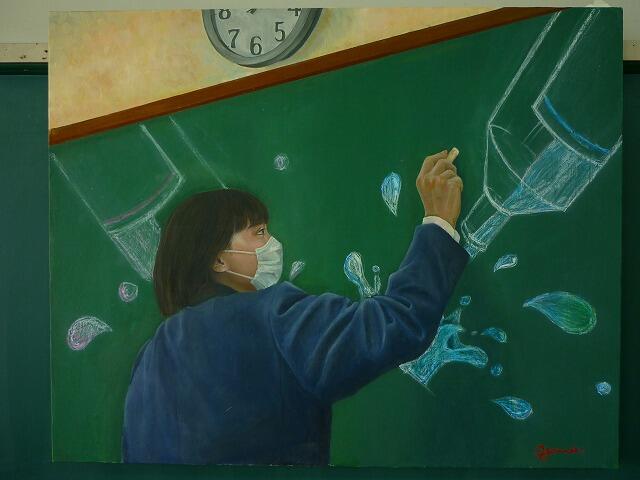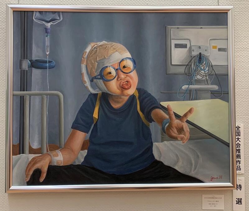 建築科2年小川さんの作品 「ラスムッセン脳炎」が、令和3年度宮崎県高等学校総合文化祭美術部門絵画の部で特選(全国大会〔東京〕選抜賞)を受賞しました。このあと加筆して「みやざき総合美術展」に出品し、見事絵画部門での入選を果たしました。高校生が本展の絵画部門で入選するのは非常に難しいので快挙でした。                            *高文祭で展示・受賞した作品はその後の他の作品展にも通常の出品資格で出品できるという規定に基づいて出品しました。