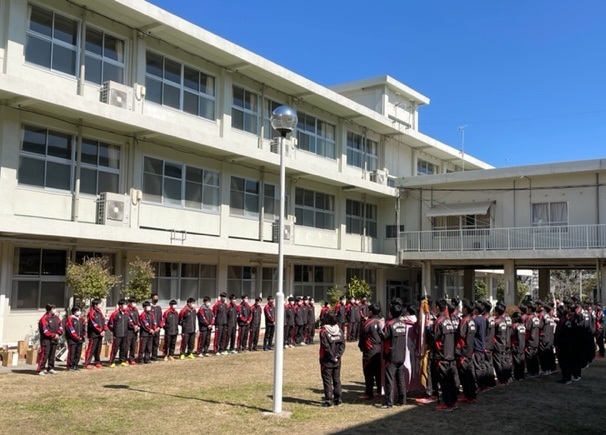 男子24名、女子3名、合計27名の選手が卒部を迎えました。良き仲間に恵まれ互いに切磋琢磨し、残した結果はもとより、人として立派に成長しました。どこに出ても堂々と胸を張って生きていける生徒ばかりです。3年間、雨の日も風の日も、暑い日も寒い日も、朝早くから夕方遅くまで、困難に立ち向かい、自身の弱さと向き合い、仲間と励まし合ってここまでやり遂げた事は、何物にも代えがたい財産となります。君たちの努力は決して無駄では無く、いつの日か必ず報われる日が来ます。陸上競技と部活動をとおして、努力、継続、工夫、挑戦、自律、友情、誠実、感謝、etc...多くの事を感じ学び、まさに”生きる力”を得たといえるでしょう。