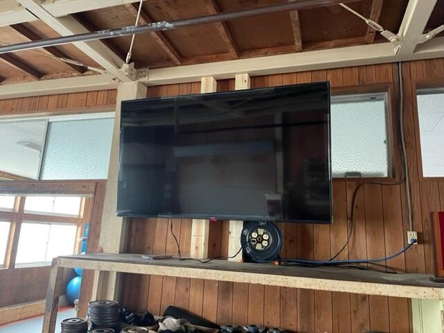 アンテナがございませんのでテレビは映りませんが、手持ちのスマートフォンやPCを接続して大型モニターとしての活用となります。それでも大会の振り返りや、練習時のフォームチェック、その他動画等の視聴が大画面で可能になります。また、これまでのタブレットでは同時の情報共有が少人数でしか出来なかったのですが、これにより多くの部員と情報を共有することが出来るようになりました。