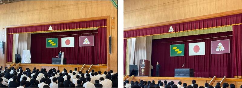 本校機械科の卒業生であり、崇城大学工学部 宇宙航空システム工学科 航空整備学専攻 助教の杉本善伸様をお迎えし、全校生徒で拝聴しました。