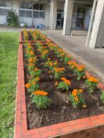 本日、宮崎農業高校の生徒の皆さんが本校に来校し、正門と中庭に植えてあるマリーゴールドの管理と花壇の除草作業を行ってくれました。また、別の花壇には新たに「アンゲロニア」という紫のかわいい花を植えてくれました。 とても暑い中、一生懸命作業をしてくれました。本当にありがとうございました。