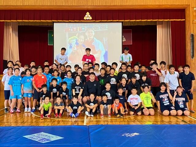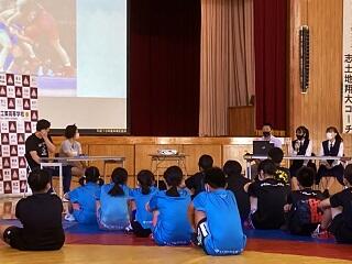 技術指導会では、向田選手の得意技でもあるハイクラッチ(すかしタックル)を教えて頂きました。向田選手や志土地コーチとスパーリング練習をするなど、直接肌を合わせて練習するなど、貴重な体験をすることができました。