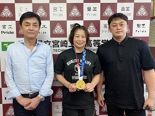高校からレスリングを始めた彼は、普段の練習だけでなく自主練習(筋トレなど)を欠かさずにやってきた成果だと思います。昨年度の全国選抜大会(新潟県)では3位、今回の全国高校総体では5位という成績を残しています。今後は「進学してレスリングをしたい」と語っている彼の今後の成長を期待しています。