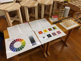 今日は一年生の実習日です。4班に分かれ、この日は①着彩 ②木工 ③CAD ④軸組(家の骨組み)模型制作に取り組んでいます。みんな活き活きと取り組んでいました。