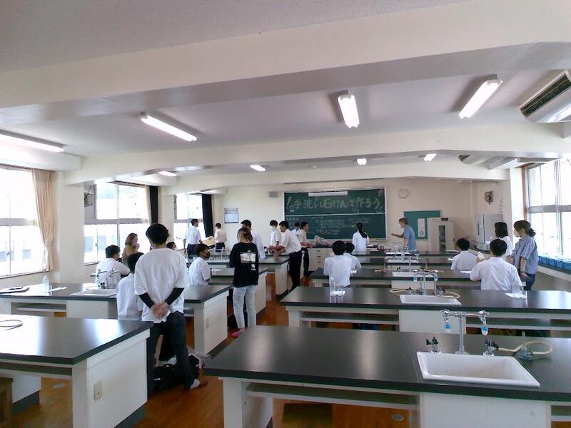 化学環境科では工業でのものづくりとして石鹸作り体験、化学についての話や就職先などの進路の話、また資格試験への取り組みといった学科の説明、施設紹介では機器分析室や、化学プラントの縮小版である水飴プラントなどをメインに実施しました。石鹸作り体験では化学環境技術部が中心となって中学生に作り方を教えてくれました。