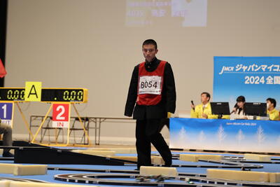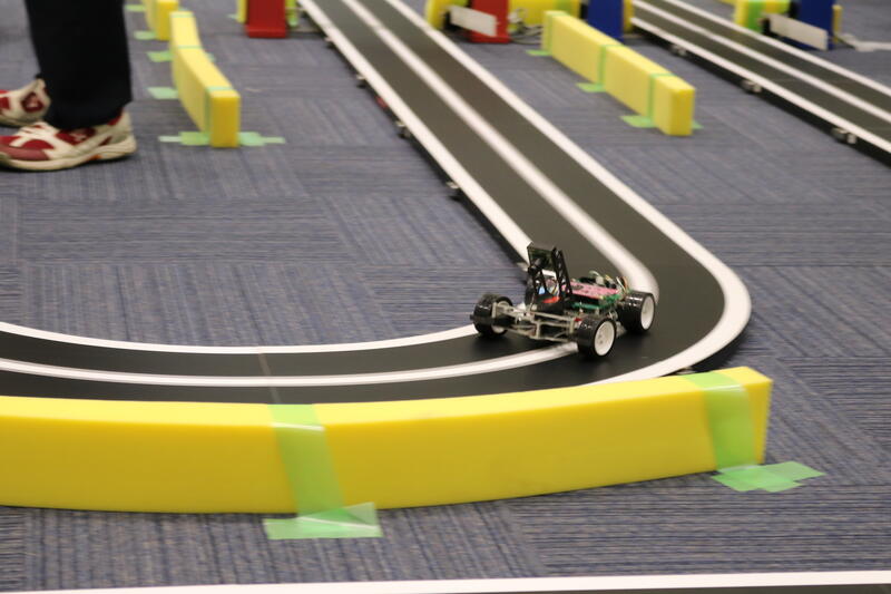 会場の照明環境によりスタートゲートの認識に苦戦しつつも、何とか試走で完走していましたが、本番は惜しくも脱輪となりました。タイム的には完走すれば全国が狙えただけに非常に残念でした。