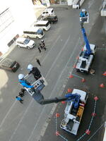 高所作業車に搭乗させてもらいました。この上で更に作業をするとは・・・技術者のみなさんはスゴイ!