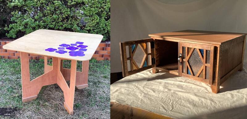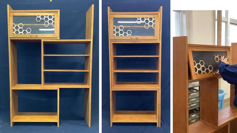 今年度は、回転する本棚やドレッサーなどの「木工家具班」、住みたい家を設計デザインする「コンペ班」、木材やアクリル板などを加工して小物を制作する「レーザー加工班」に分かれ、個人作品制作に取り組みました。
