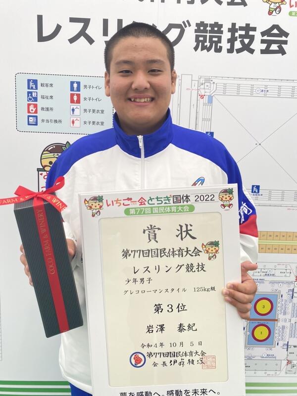 岩澤泰紀(機械科)が、少年男子グレコローマン125㎏級で3位でした。