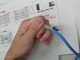 LANケーブル製作体験では、カテゴリー5の8芯ケーブルを剥き、RJ45端子を取り付ける作業を行いましたが、ストレートケーブルとクロスケーブルで配線が違う事や、端子に上手く挿入するまでに整える小技など、初めての体験に苦戦を強いられていました。それでも、LANテスターでチェックを行い、無事に完成した時は喜びの笑顔が絶えませんでした。