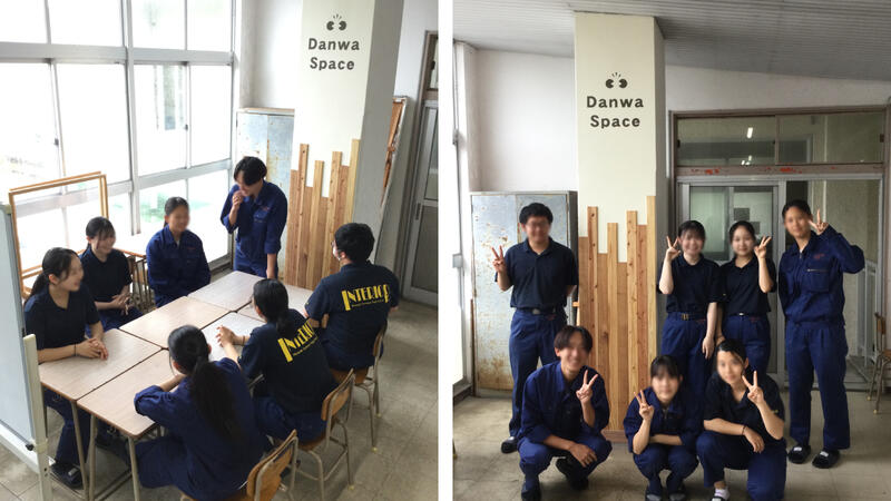 インテリア科3年生 課題研究木工班7名が、今年度4月から6月上旬にかけて、生徒支援室よこ及び生徒会室前にある「談話室 サイン制作」に取り組みました。