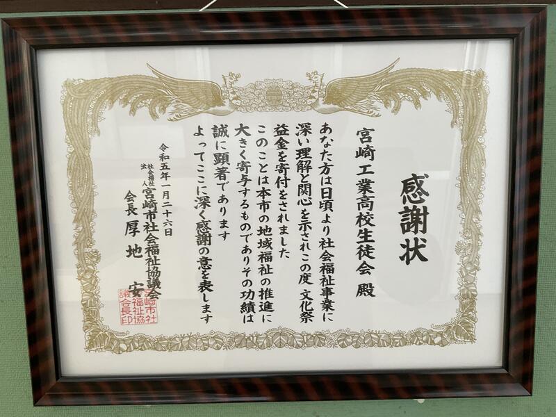 【生徒会】社会福祉法人宮崎県共同募金会へ寄付 投稿日時 : 2023/01/30 miya3605 1月26日(木) 双楠祭(宮崎工業の文化祭)での益金を寄付させていただきました。 生徒会長含む5名で訪問しました。 {{options.likeCount}} {{options.likeCount}}