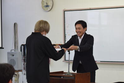 表彰式では、計算技術検定3級や校内における検定試験の合格者、スポーツ大会における入賞者の表彰を行いました。