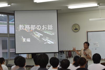 その後の全校集会では、校長先生や各部からのお話があり、夏休みの過ごし方についての注意喚起と心構えがアナウンスされました。生徒は来る夏休みに思いを馳せながら、耳を傾けていました。