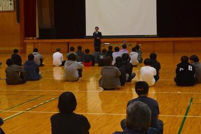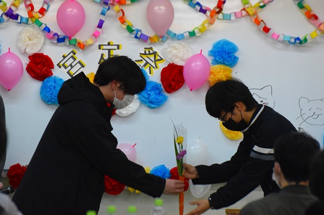 また、全校生徒と職員で卒業予定者をお祝いしました。