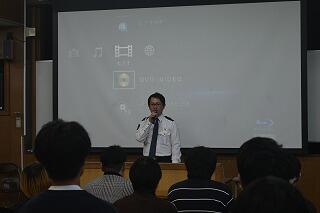 本日1限目に交通安全教室が開催され、宮崎南署の方から自転車運転に関する交通ルールを中心に講話がありました。