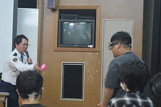 授業の最後には、未成年の生徒でも酔った時の状況が疑似体験できるグラスを着用して、ふらつきながら歩いたり、ボールがうまくキャッチできないことを体験しました。