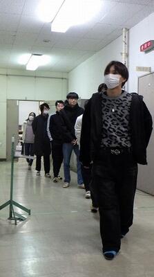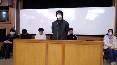 在校生と職員が拍手で迎える中、4年生の入場。生徒会長の岩下さんから送る言葉、在校生からの花束贈呈と進みました。最後に4年生全員からのひと言では、 宮崎工業定時制で過ごした学生生活の感謝の気持ちや在校生に対して先輩としてのアドバイスなどを語っていただきました。