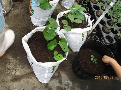 本校のジャガイモ(ポット)とサツマイモ(袋野菜)はこのような感じになっています。