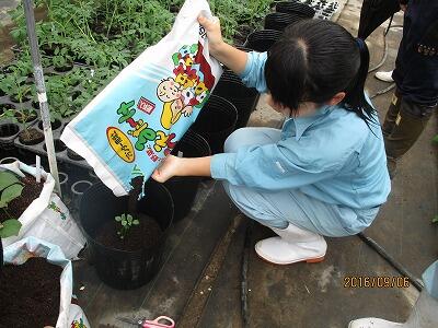 生産流通科の生徒が育てた苗をポットに植えました!子どもたちは慣れないながらにも頑張って苗を崩さないように作業してくれました