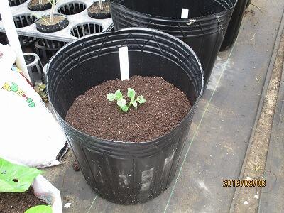 セルトレイから3号ポリポットに移し替えました。鉢上げをすると根がその鉢いっぱいに広がろうとする効果を生かして成長を促す効果があります。