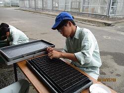 生産流通科の生徒が実演を交えながら、子供たちと一緒にコールラビの種をまきました!!