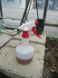 スプレーの容器に忌避剤を移しコールラビの苗に散布した