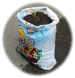 学校で育てている袋野菜(サツマイモ)とポット(ジャガイモたねまきから1ヶ月が経ちましたが、順調に育っていますか。