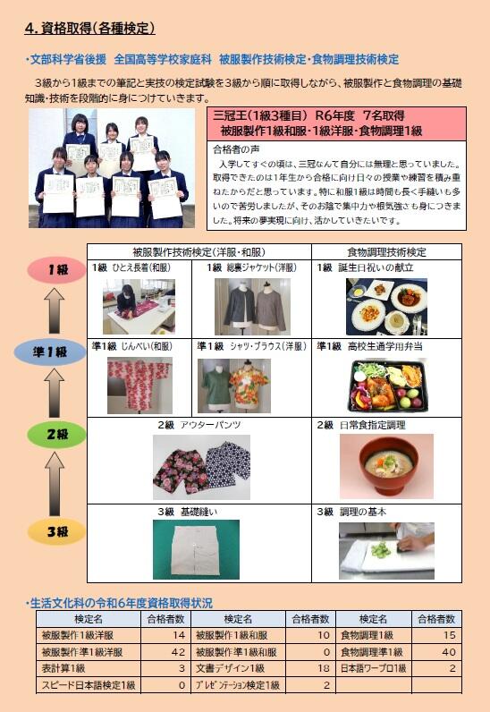 生活文化科の学習内容や資格取得状況・進路状況などの資料を作成しました。