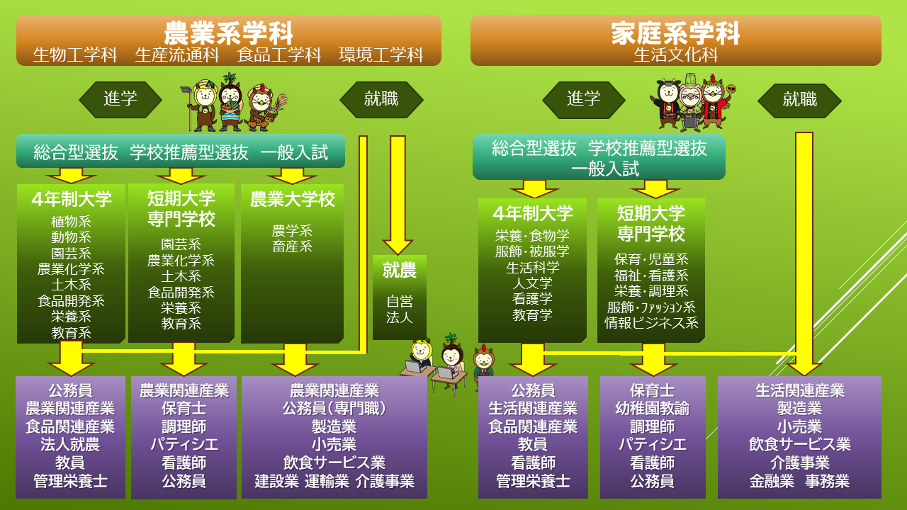 ★★★幅広い進路選択ができます★★★ クリックすると拡大できます ★進路先詳細一覧学科別の進路先一覧を作成しました。下記のPDFファイルをご覧下さい。 令和4年~令和6年度進学合格状況一覧.pdf 過去3年間就職先一覧(R4~R6).pdf ★進路先学科別集計表