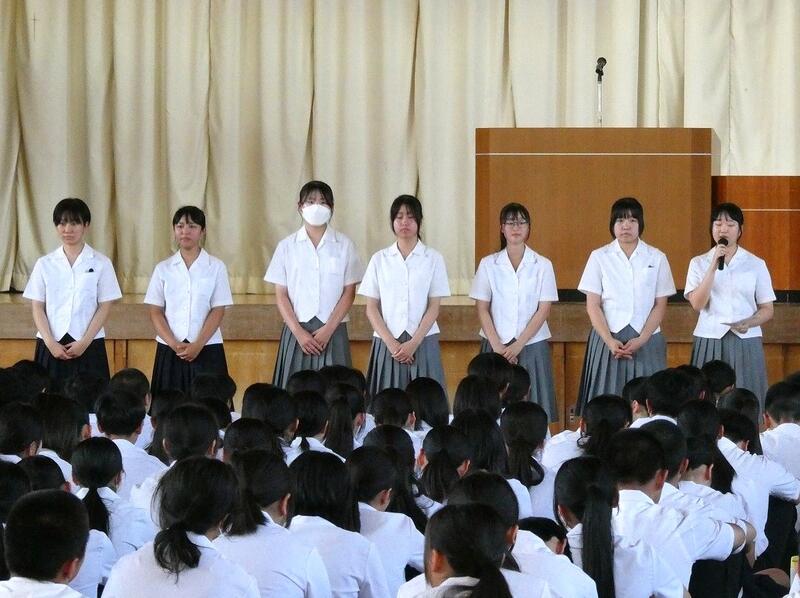大会では、全国大会の発表の様子や本校が【学校家庭クラブ活動】の部で文部科学大臣賞を受賞したことを紹介していただきました。