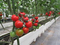 2月8日に種まきしたトマトの苗を定植しました。肥料の種類や量の異なる3つの試験区を設定しました。これから定期的に生育調査や収量調査などを行い、肥料の効果を検証していきます。