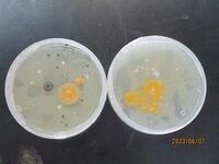 もともと赤い培地だったのが、黄色く変色していました。