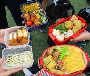 みんな事前に献立を考えて材料を買い、朝早くから起きて作りました。力作のお弁当がこちらです!