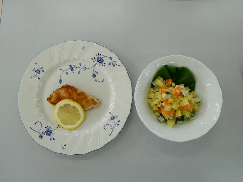指定調理「魚のムニエル」と「マセドアンサラダ」を40分以内に調理し、片付けまで終えるという内容です。