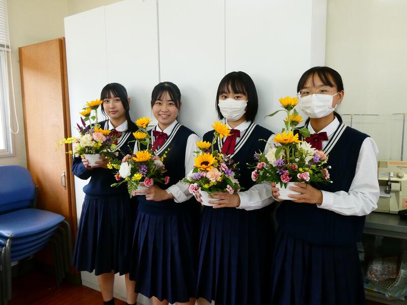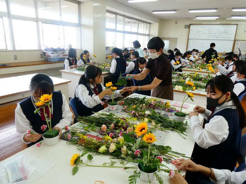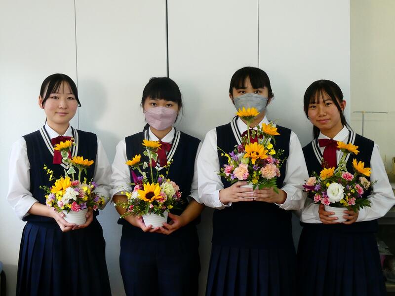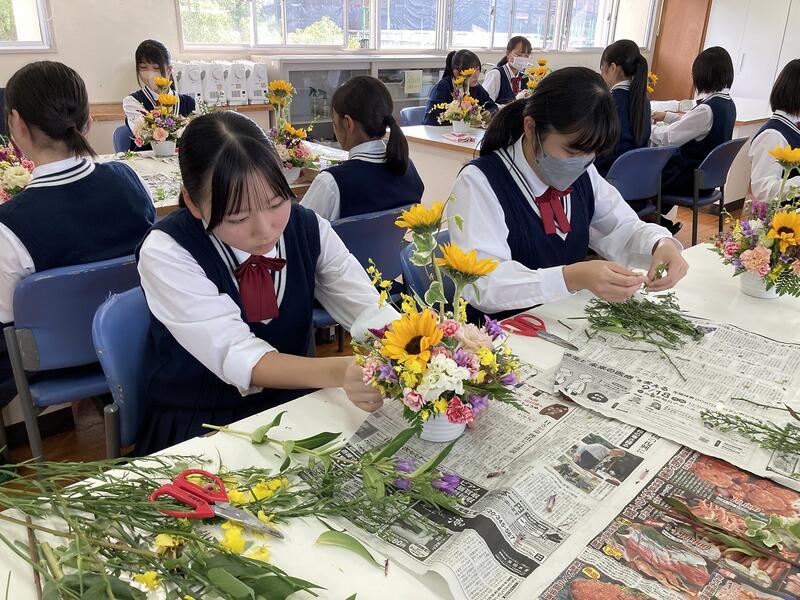 生活文化科1年は初めてのフラワーアレンジをしました。 みんな一生懸命取り組みました!