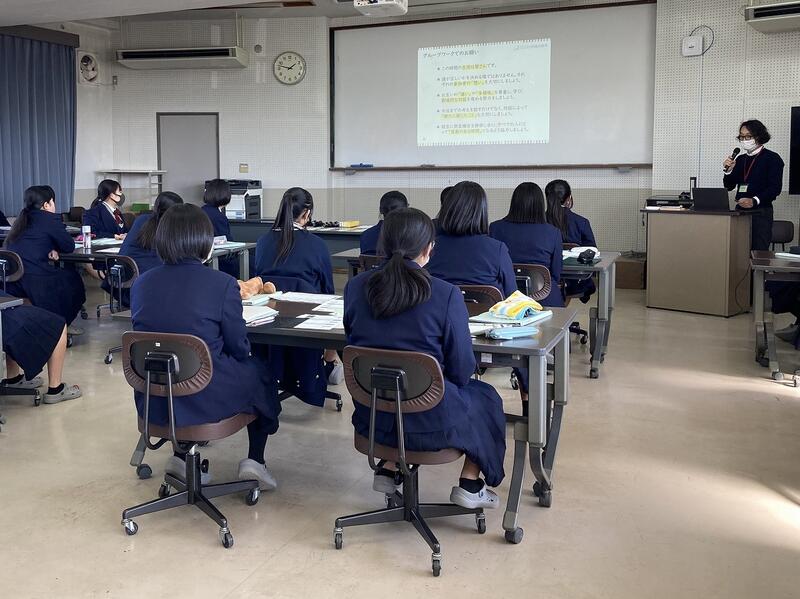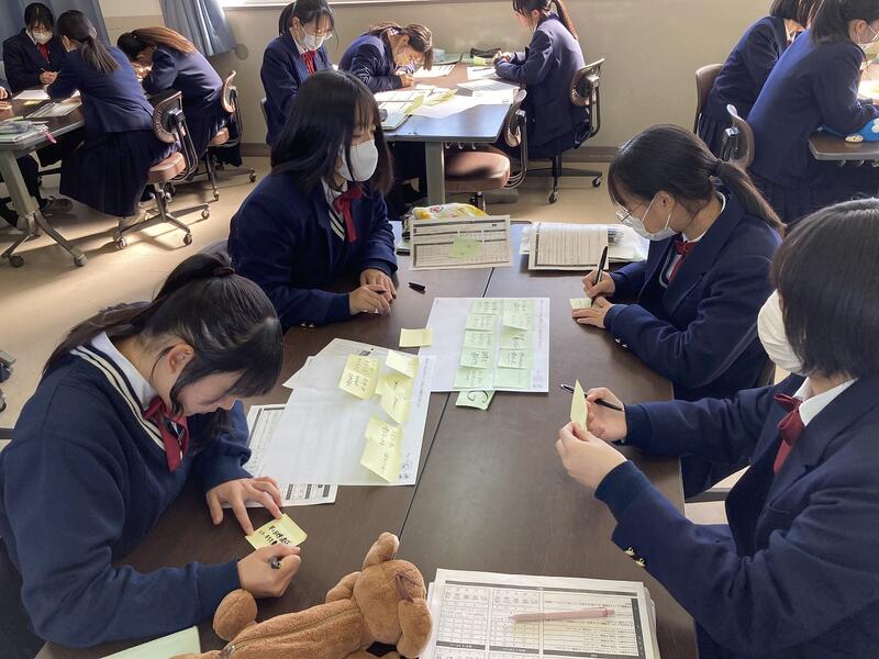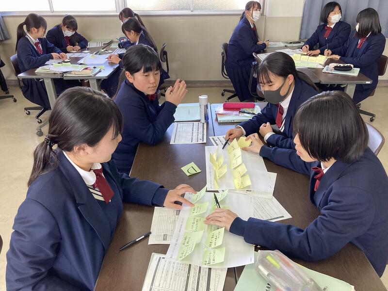 前回の演習を通して発見したことを出すために、まずアウトプットの練習として付箋の使い方を学びました。そのおかげで自分の意見を上手く表現することができました。そして、明日から実行できるアクションについて、全体で共有しました。生徒の中には「日常生活でゴミ拾いを意識的にするようになりました。」などの具体的な行動がみられ、「SDGsを自分事として捉えられるようになりました。」という感想もありました。今回の振り返りはとても重要で、SDGs講習会から学んだことを実際に行動にうつせる人がたくさん増えるとよりよい暮らしが生まれてくるかもしれませんね。瀧様、実践的な講習会をありがとうございました。