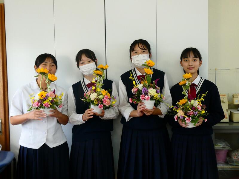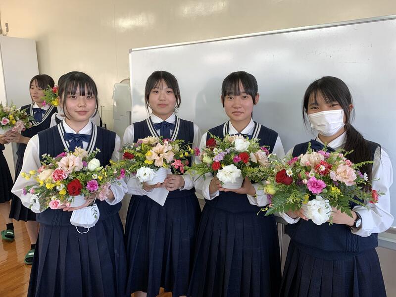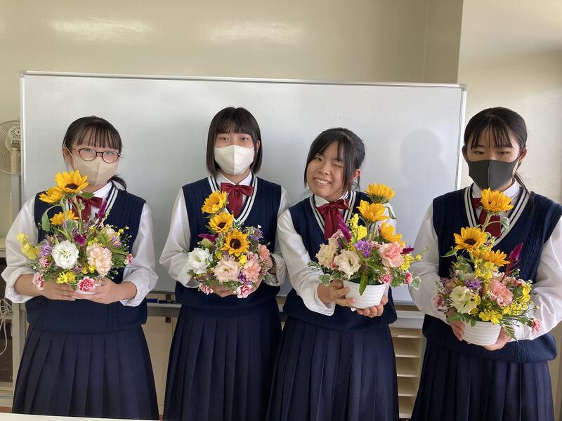 生活文化科1年は初めてのフラワーアレンジをしました。 みんな一生懸命取り組みました!