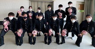 2月28日に卒部式を行いました。例年は後援会の方々に企画、運営していただいていたのですが、今年は例年通りには開催できなくなりました。今年は校内で3年生だけが集まり、顧問から記念品を贈呈して、一言あいさつをしてもらいました。それぞれに3年間の思い出や仲間への感謝の気持ちなどを話してくれました。3年間、さまざまなことがありましたが、できることを模索し最後までがんばってくれました。これからの活躍に期待しています。